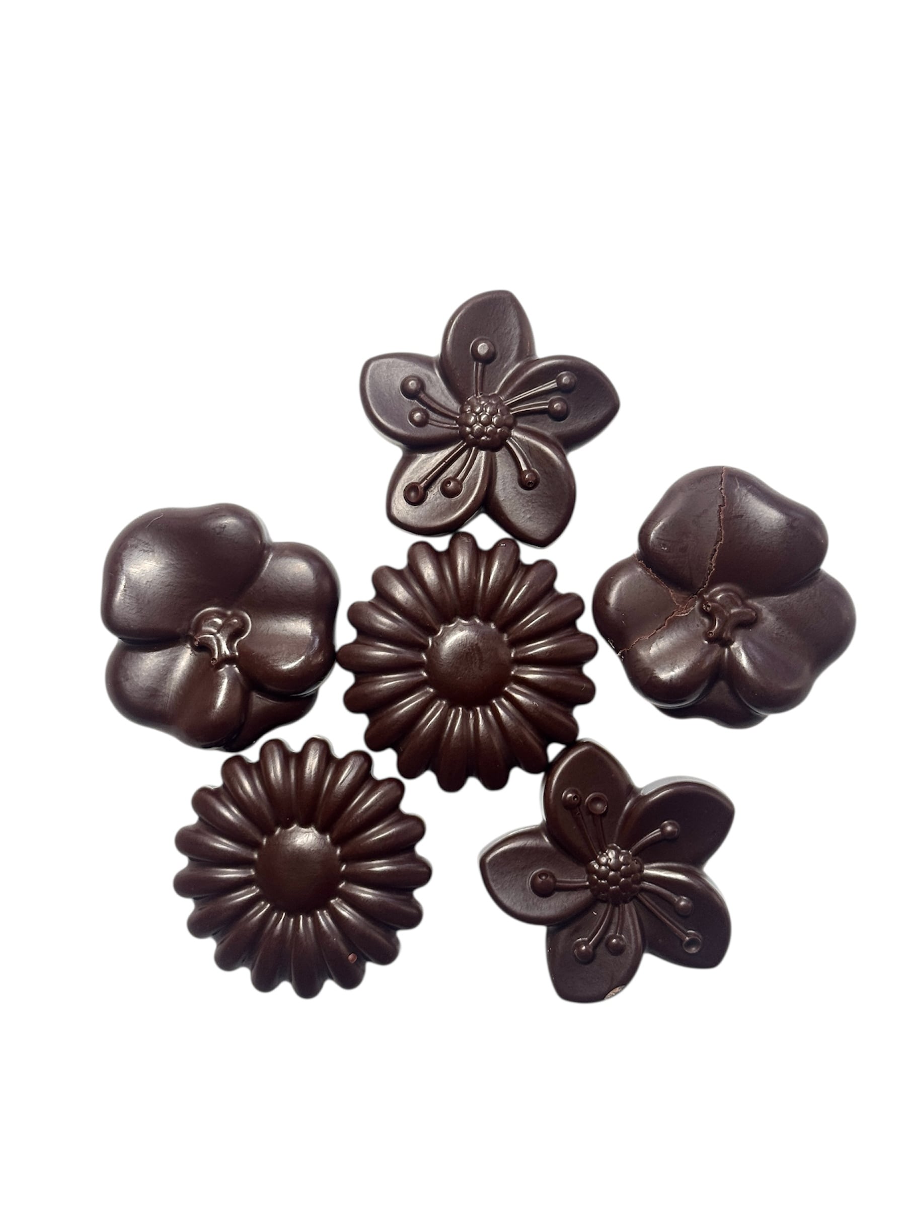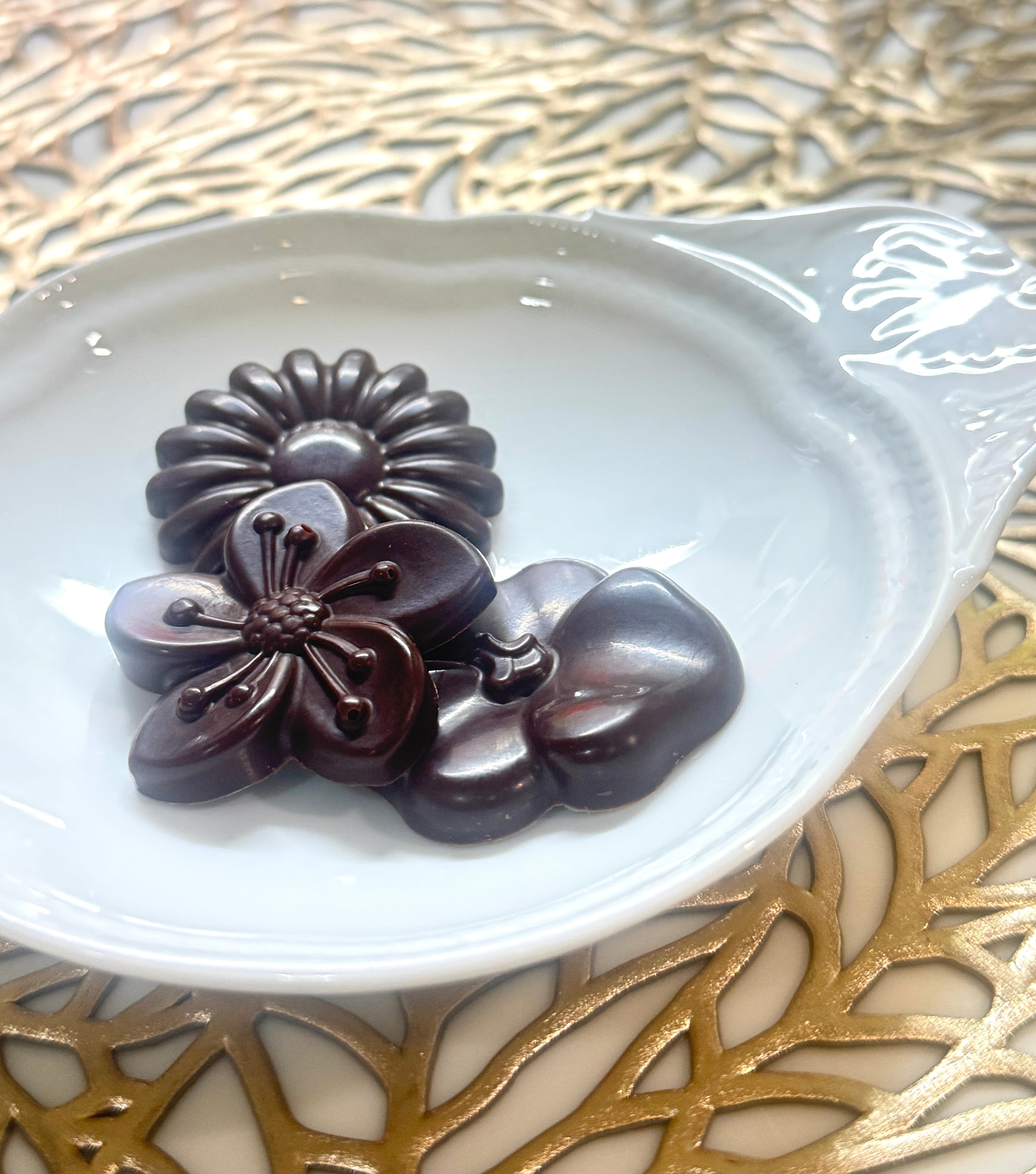 カカオマスの濃厚な味わいを花型で楽しむ、上質なローチョコレート。